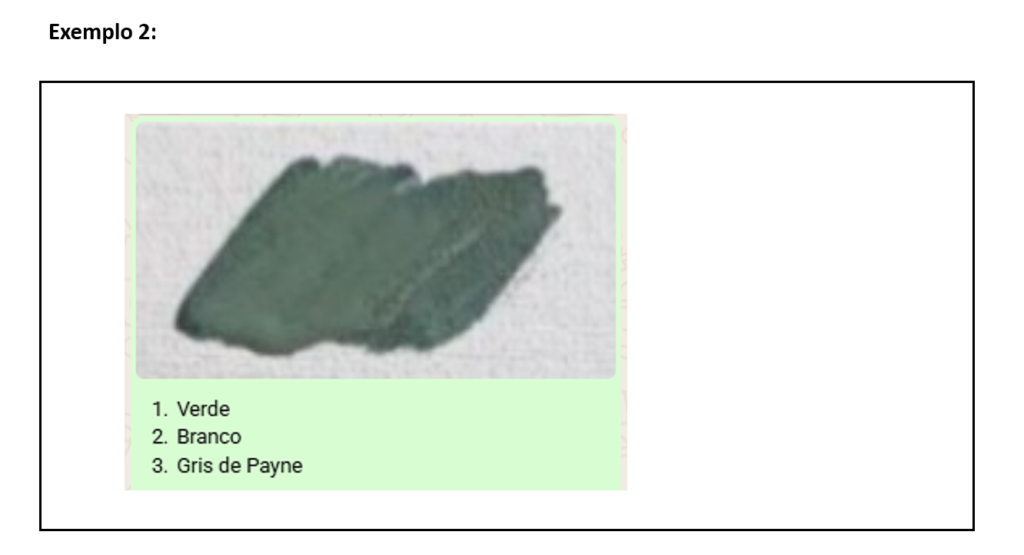 Ao lado de cada mistura criada você deve anotar as cores que utilizou para chegar naquela tonalidade.