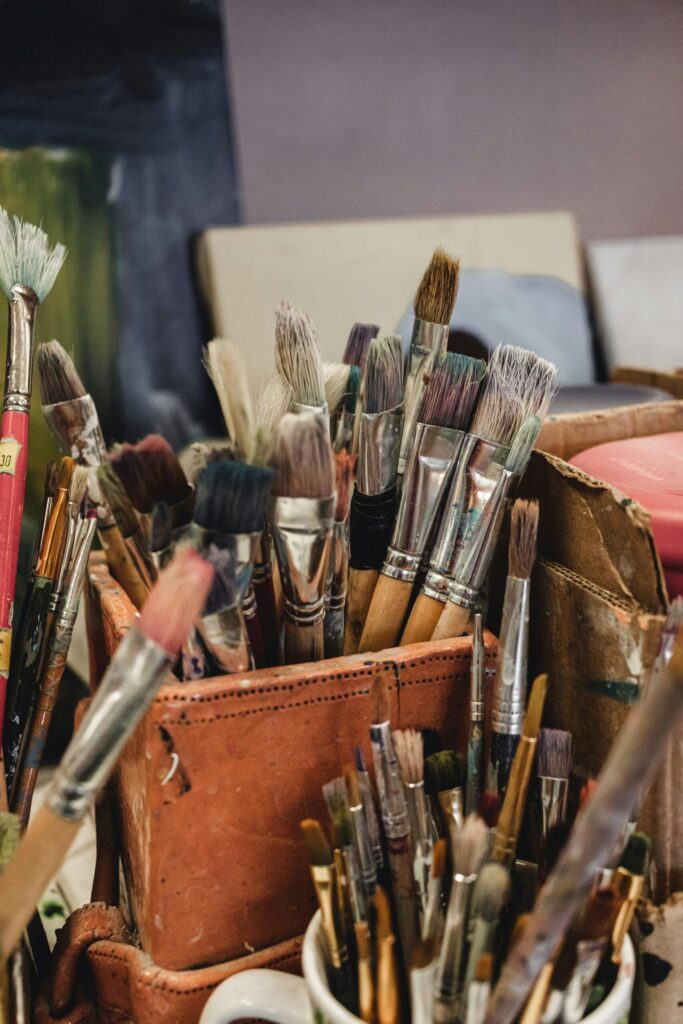 Fotografar pelo menos 3 momentos diferentes do processo de pintura: 2 ou 3 fotos do processo + 1 foto da obra finalizada (essa vai para a galeria)!