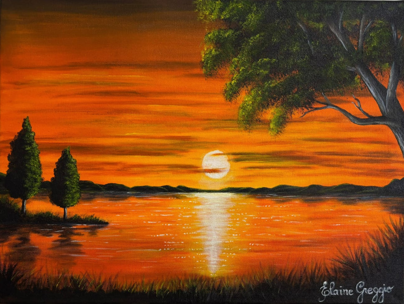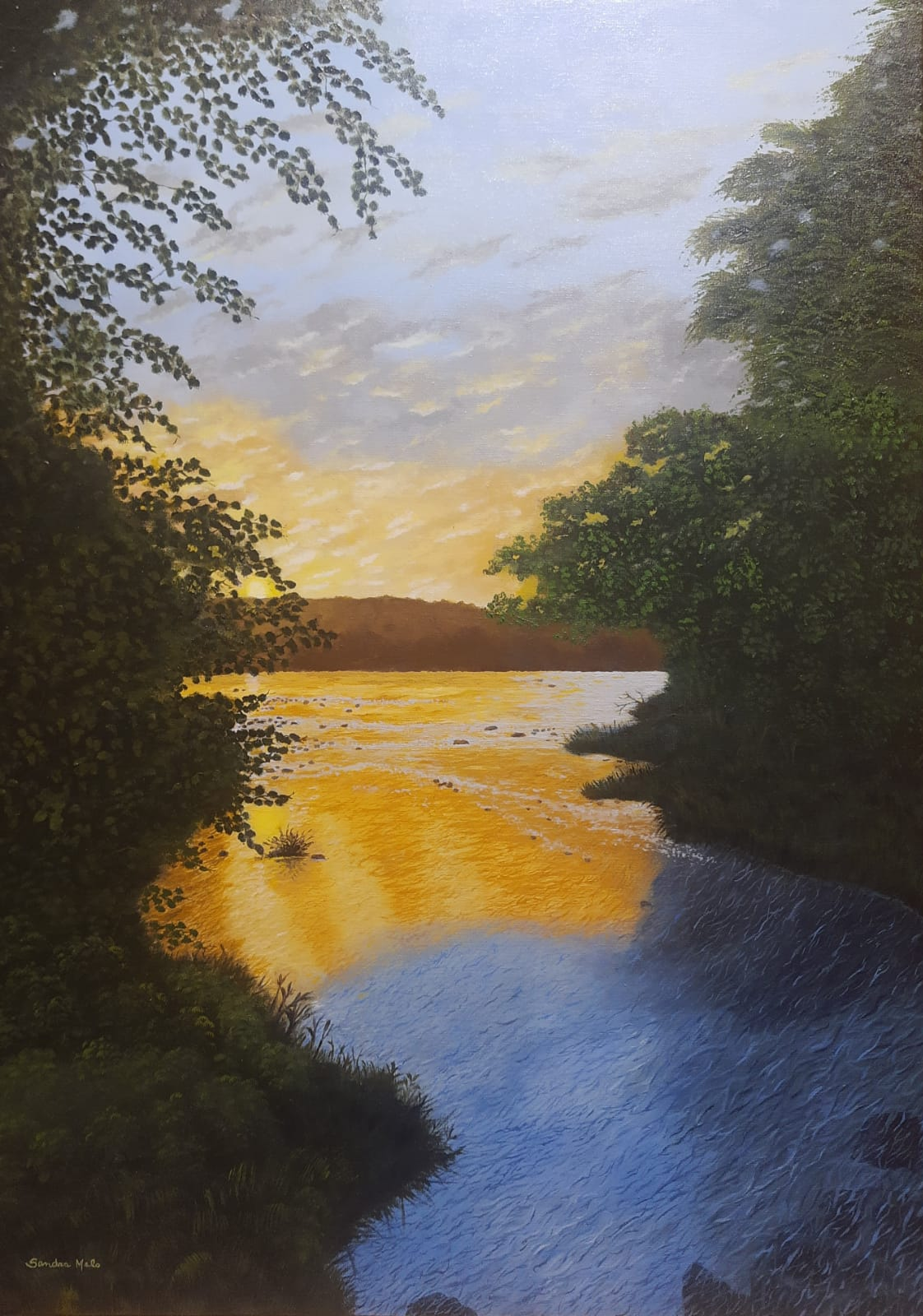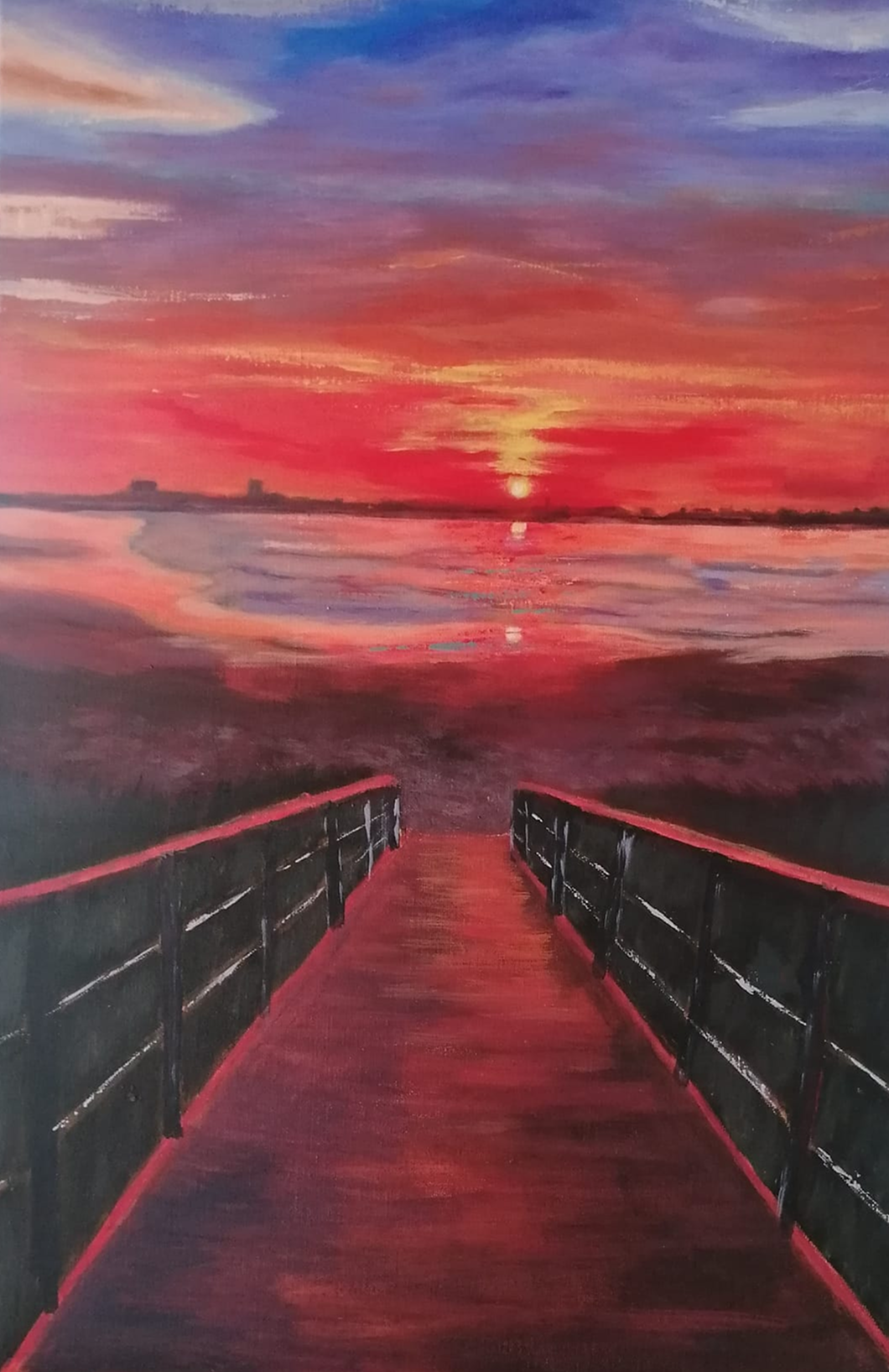 Resolvi pintar um por do sol. Porque, mudei de Porto Alegre para a cidade de Canoas. E sinto muita saudades de olhar o pôr do sol do Guaiba em Porto Alegre, então para compensar a falta que me faz ver aquele pôr do sol.