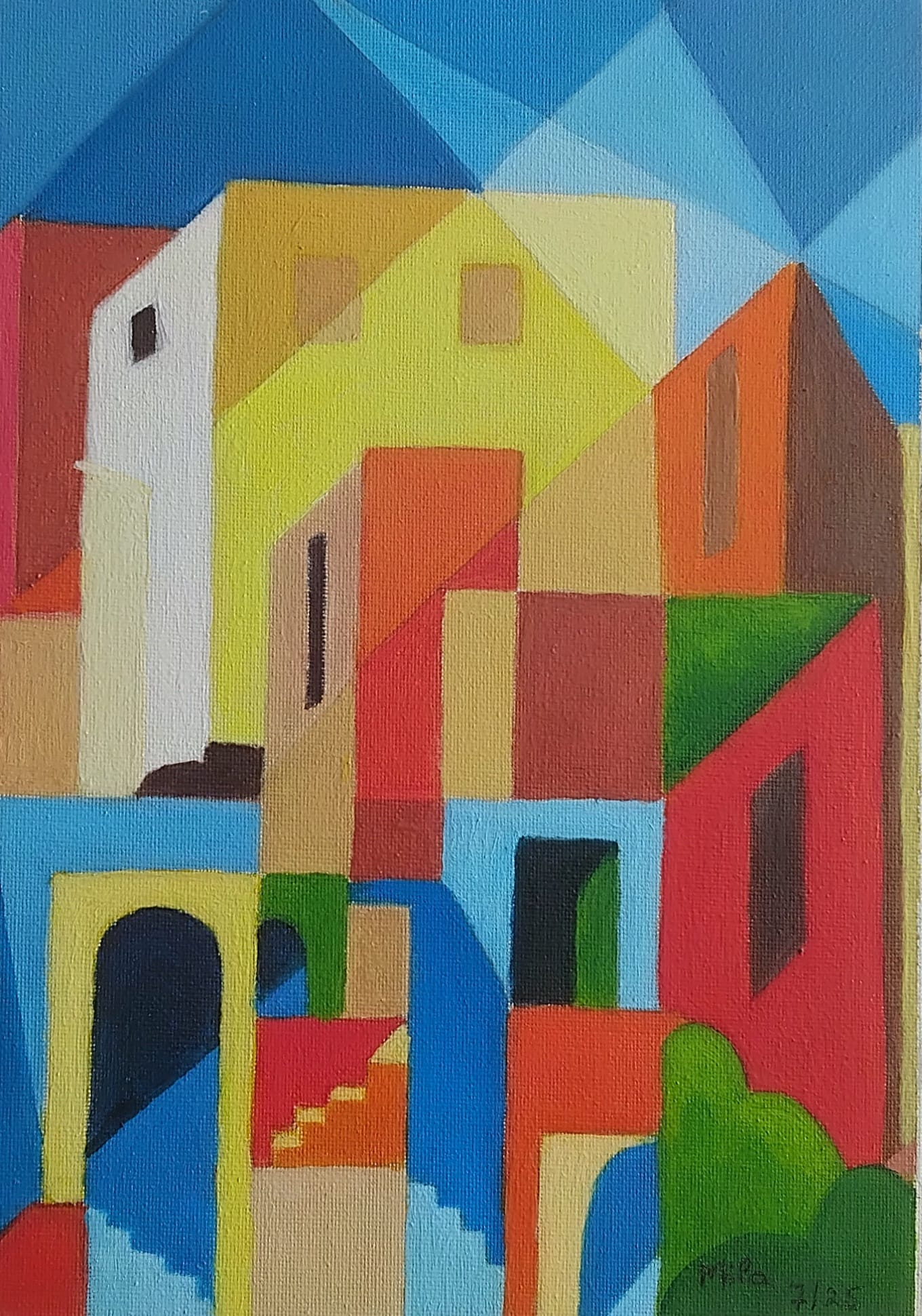 Com a minha pintura quis expressar uma visão de modernidade, quebrar a monotonia com cores fortes e mostrar uma nova perspectiva da minha pintura.