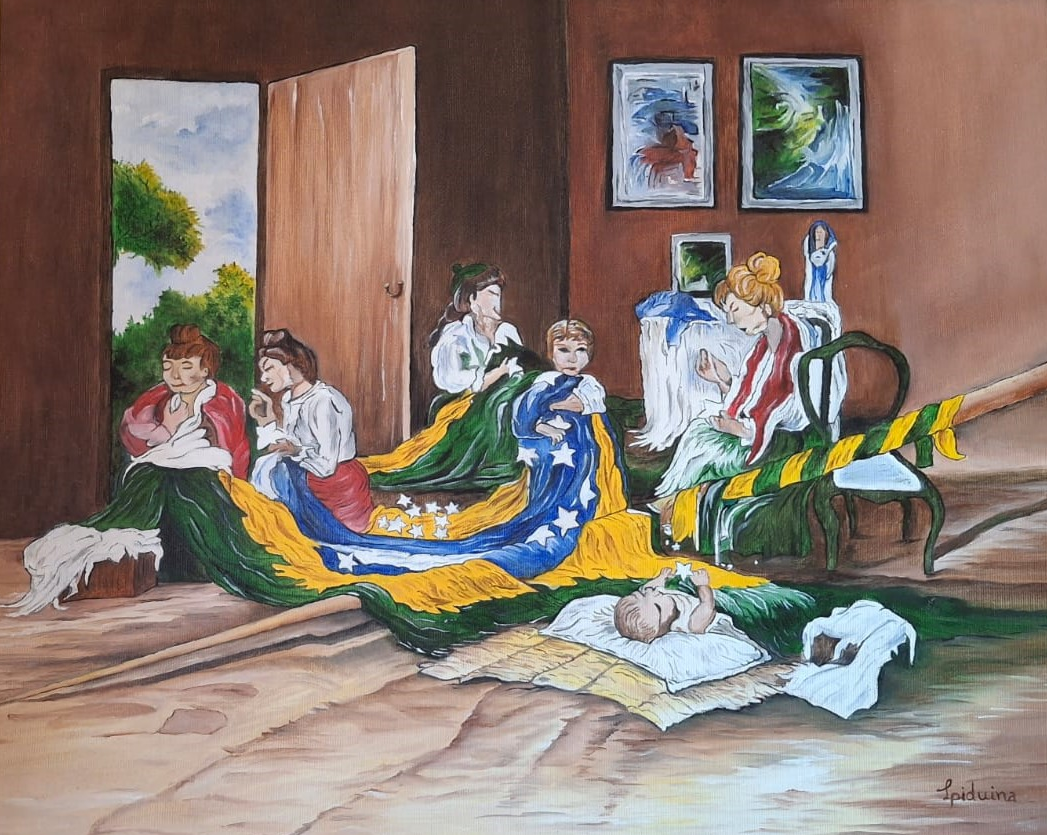 Esta pintura representa o que há de mais importante para mim: minha família, meu esposo e meu filho. Ela também representa a nossa pátria, as nossas raízes. É uma obra que significa muito para a nossa família, que guarda um pedaço da nossa história.