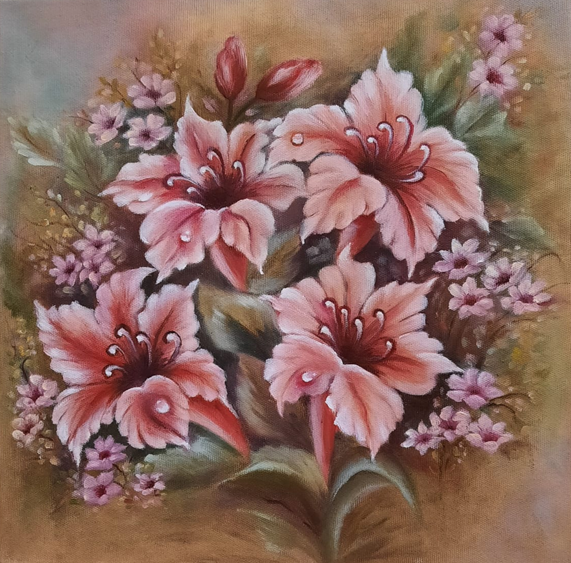 Amo a natureza! Amo flores! Fiz essa tela há 25 anos. E agora um sobrinho viu no meu Instagram, apaixonou e fiz uma segunda edição! Após um longo período sem pintar, ao assistir as aula da professora Jane, voltei a pintar e percebi que consigo!