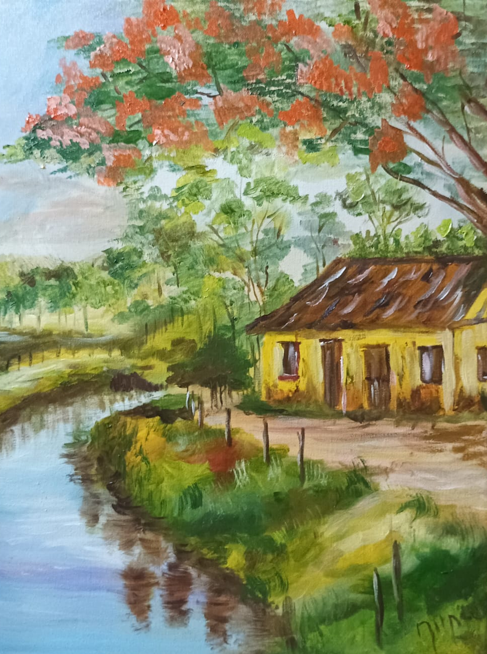 A beleza da natureza me incentivou pintar por trazer sentimentos de muita alegria e de belas lembranças com a presença da família.